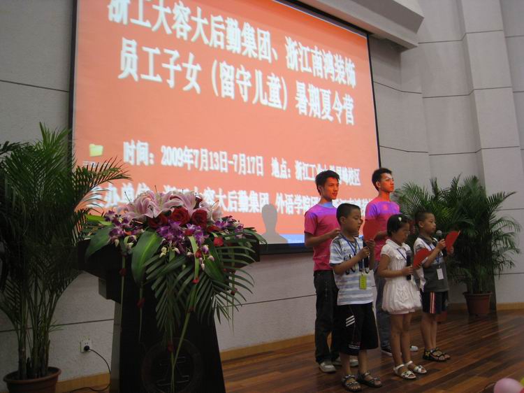 2009年7月14日,由浙江工業大學容大后勤集團.外國語學院團委組織承辦,南鴻裝飾贊助的第三期留守兒童夏令營的開營儀式在浙江工業大學屏峰校區的羽林樓禮堂舉行.