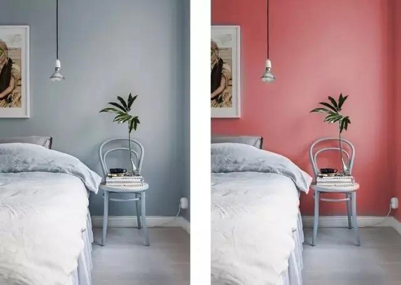 暖色會(huì)讓人覺得物體更接近你,視覺距離短,故又稱為之前進(jìn)色,冷色則相反,屬于后退色,會(huì)使視覺距離變長。善用前進(jìn)色和后退色,能讓我們自如地對戶型進(jìn)行優(yōu)化。