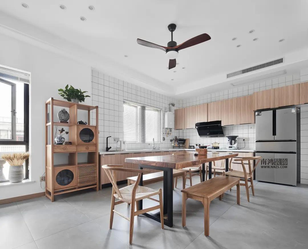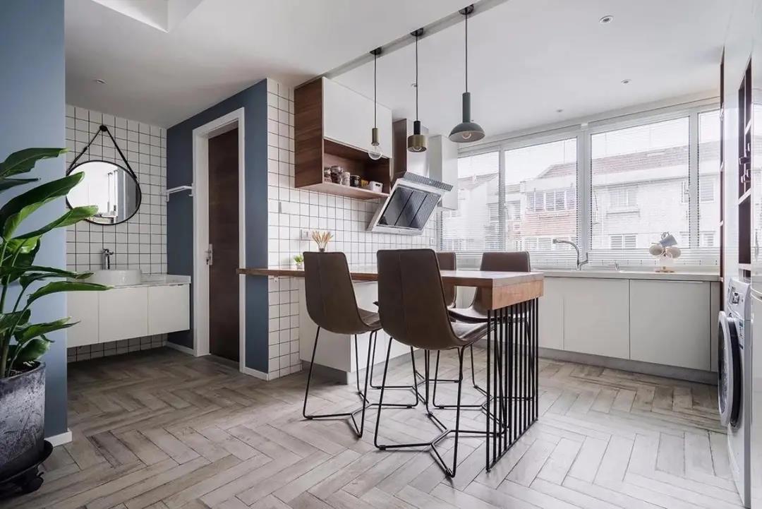 木元素視感溫潤,小白磚干凈清爽,兩者搭配可謂天作之合。