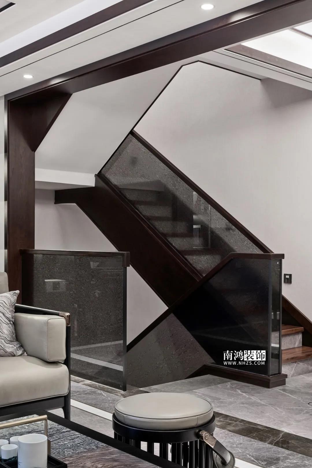 A family of three, the life of two generations. In this neat space, there is no complicated shape, the straight-line design gives more room for expression of Chinese art, nurturing a distinctive elegance, and allowing people to appreciate the essence of oriental aesthetics in the relaxation. 01. 東方古韻 ORIENTAL RHYME 深色的木飾面彰顯穩(wěn)重與大氣 多層次的燈光、材質(zhì)烘托氣韻 中式的素雅色彩 搭配現(xiàn)代感的利落線條 清晰而明亮的結構 帶來恒久的美感 02. 客廳 LIVING ROOM 細致排布的空間格局中 色彩與形體總能讓我們產(chǎn)生第一直覺 厚重的深木色中和上清淺的灰白 讓空間帶上了歲月沉淀的藝術感 吊頂做工細節(jié)到位 現(xiàn)場折邊,木線內(nèi)嵌 勾勒出大氣高級的調(diào)性 沙發(fā)后的柜體融合琴區(qū) 鋼琴鍵上,指尖躍動 記錄著生活的美好 落地窗映照著庭院風景 忙碌的快節(jié)奏生活 總需要一塊靈魂的歇腳地 供人放下疲憊,掃清愁緒 03. 餐廚空間 KITCHEN | DININGROOM 經(jīng)由樓梯廳過渡至餐廳區(qū)域 家具以質(zhì)樸素凈的自然肌理 營造低調(diào)而莊重的空間磁場 器物靜置于空間內(nèi) 意境便在其中 安靜渲染著素樸的美學 半開放式廚房 與餐廳保留了互動感 左側做到頂黑色柜體 完美解決廚區(qū)收納 同時將部分電器內(nèi)嵌 看起來簡潔清爽 04. 樓梯間 STAIRCASE 樓梯踏步由木材與石材結合 肌理感的互動豐富了空間層次 負一層的樓梯設計 更有立體幾何美感 成功制造出視覺的虛實變化 05. 臥室 BEDROOM 溫馨典雅的主臥空間 圓潤的弧度流露出溫柔氣質(zhì) 一切從生活的本質(zhì)出發(fā) 給予居者心靈的放松 衣帽間處于睡眠區(qū)與主衛(wèi)之間 將兩個空間彼此聯(lián)通 衣柜門順勢做了房門 充分體現(xiàn)設計的巧思 客臥選取芥末黃進行點綴 頗具藝術感的烏云壁紙 讓時尚優(yōu)雅的氣息緩緩彌漫 06. 書房 STUDY ROOM 方正的線條結構 灰色的中性色調(diào) 設計在平靜而克制的基調(diào)中 力求喚醒居者內(nèi)心的安寧 07. 功能區(qū) LEISURE ROOM 瑜伽健身室 開放式設計與超大鏡面 不顯拘束的空間給予使用者最大的舒適 墨綠色打造的榻榻米房 滿足收納的同時 提供了一塊自在使用的空間 08. 衛(wèi)生間 BATHROOM 墻地面通鋪淺色瓷磚 明亮的用色更顯寬敞