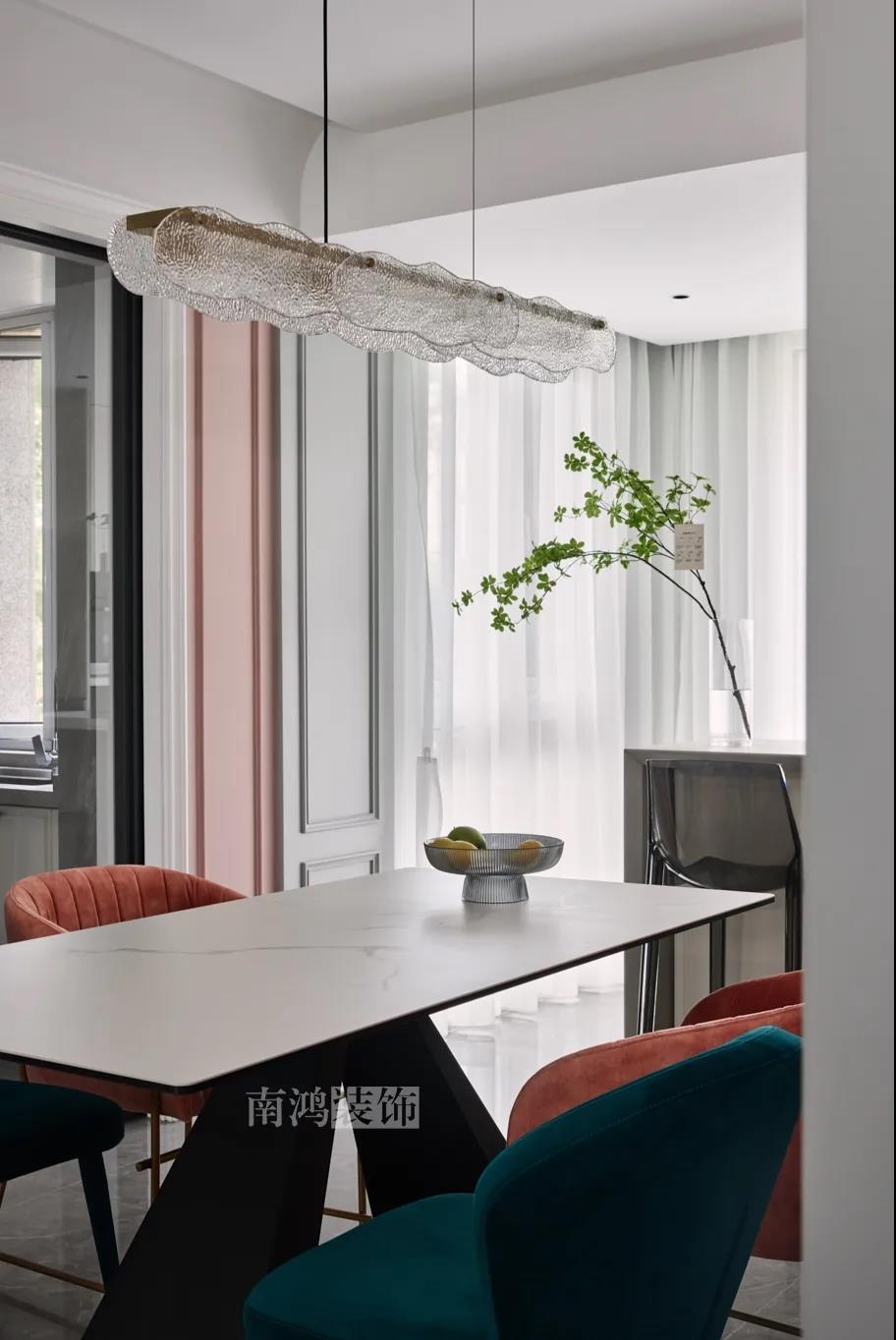 01. 客戶需求 本案的屋主非常喜歡小美式風格的清新自在,又向往著現(xiàn)代簡約所傳達的生活理念,所以設計師依照他的喜好,將兩種風格元素巧妙糅合,讓整體空間在浪漫優(yōu)雅的情調(diào)中傳遞出主人的獨特品味。 02. 裝飾亮點 REFRESHING 擯棄了粗暴的材質(zhì)堆砌,將小美式與現(xiàn)代簡約巧妙結(jié)合在一起,色調(diào)上選用低飽和度的高級灰與柔和的莫蘭迪色,致力于呈現(xiàn)一個唯美純粹、具備高級感的美學空間。 03. 戶型圖 04. 設計落地 客 廳 客廳以高級灰為主基調(diào),低飽和度的特性使得它具備很強的包容性。 電視背景將美式的經(jīng)典線條護墻與利落的大理石磚組合,沙發(fā)背景則做了木護墻隱形門處理,配以簡單干凈又不減細節(jié)的吊頂,既實現(xiàn)了兩種不同風格元素的結(jié)合,又能讓造型為居家功能服務。 靠近陽臺擺放一把亮麗單椅,電子壁爐內(nèi)躍動著溫暖的火苗,成為美妙的休憩一角。 節(jié)制而有意蘊的設計手法,賦予空間最具詩意的內(nèi)涵表達。 開放的領(lǐng)域中,客餐之間連貫而又相對獨立,在敞闊的尺度中讓主人感受到家的舒適。 餐 廳 餐廳,是讓人走近便頓覺眼前一亮的空間所在。花朵般嬌嫩的煙粉色,是莫蘭迪色系中超有存在感的一派,又如晚霞,純凈美好,撲面而來便是夢幻與浪漫的氣息。 餐廳處還添加入西廚的功能,讓廚房實現(xiàn)多功能化,同時弱化了原區(qū)域的狹長感。 過 道 “人生忽如寄,莫辜負茶、湯和好天氣。”清朗平和的過道景致,自給人一種寧靜的深邃感受。 臥 室 臥室刪繁就簡,通過淺色的床品與干凈的硬包背景,營造簡約純粹的清韻。 兒童房是一個多姿多彩的空間,活潑的星星圖案,多種低飽和色調(diào)搭建的背景墻面,整體氣氛輕松愉悅,作為一個成長型空間來說也充滿著可塑性。 衣 帽 間 純白的視象,抽離了所有多余的表達,兩側(cè)衣柜默默擔當著收納的使命,井然有序地包容著一切冗雜。