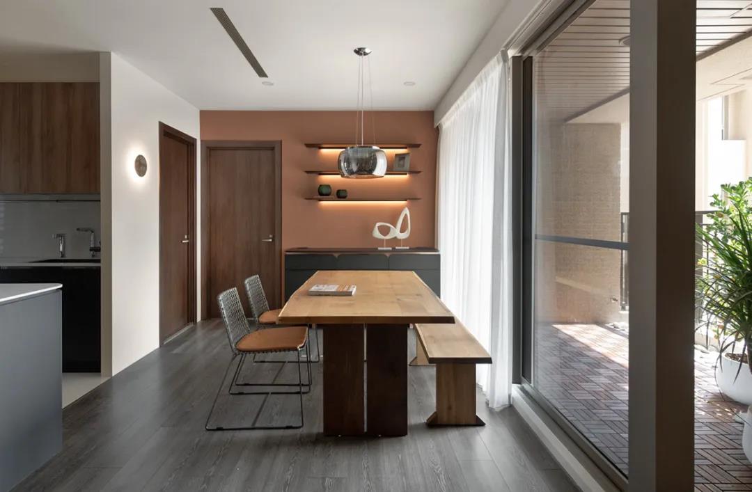將吧臺與餐桌結(jié)合的設(shè)計相當(dāng)美觀,無論是就餐還是品酒,都讓生活充滿了情調(diào),適合單身或是兩個人住的家庭。