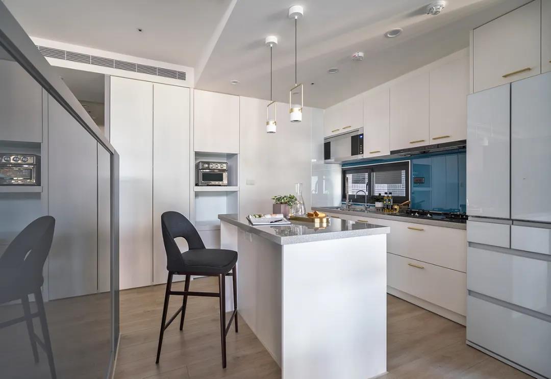 比如,開放式餐廚空間,讓餐廚兩塊區(qū)域的動線共享,實(shí)現(xiàn)“1+1>2”的效果,小戶型也能擁有一個比較寬松舒適的做飯、就餐空間。