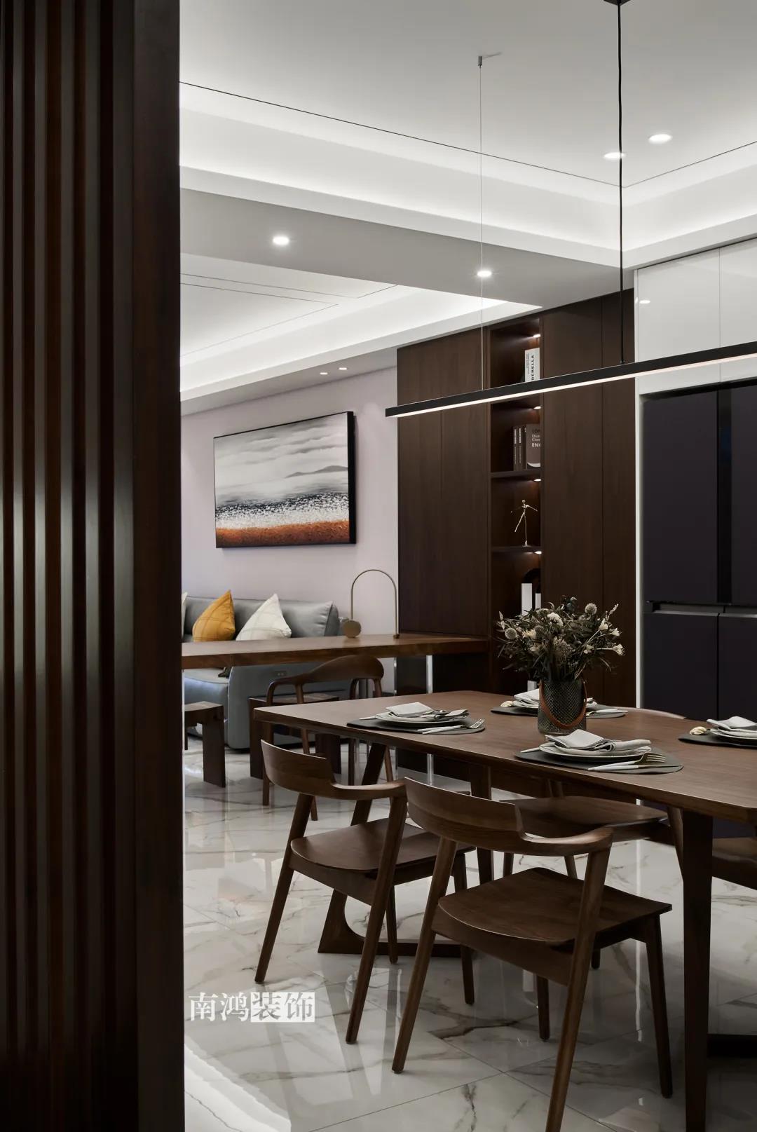 192㎡三室兩廳,胡桃木引領潮流,開放式餐廚是真的香!