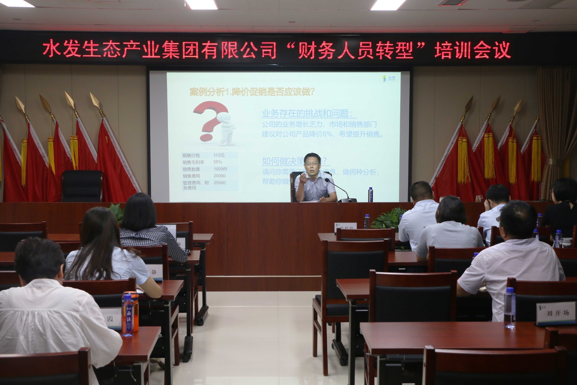8月25日,水發生態組織召開環保、節能節水設備抵免稅收優惠、財務人員轉型專題培訓會議,集團黨委書記、董事長公培山,副總經理于明,集團財務部及各權屬公司財務負責人參加本次會議。